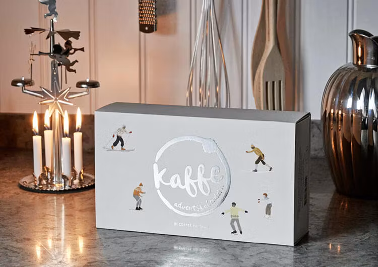 I år är det Fine little day som har tagit fram mönstret som pryder Kaffeadventskalendern 2021. Skidåkarna och skridskoåkarna ger oss en vintrig och fartfylld känsla som får oss att vilja vintersporta! Och vad passar bättre till vintersport utomhus än en termos fylld med favoritkaffet? Fine little day är ett designföretag med bas i Lindome strax utanför Göteborg. Deras formgivning tar avstamp i lekfullhet och passionerat hantverk, ofta med motiv från naturen och vardagslivet. Originalmålningen är av Elisabeth Dunker och är målad med krita, penna och akryl.