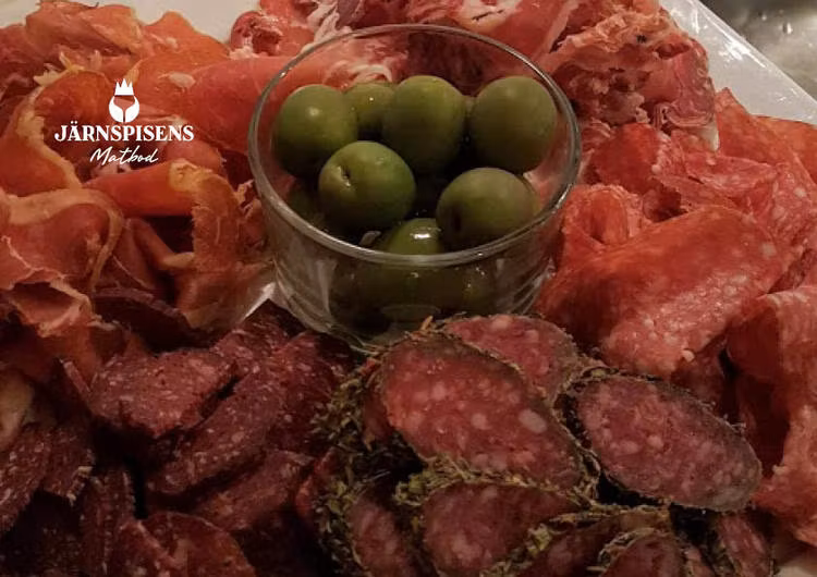 En charkuteripåse laddad med tre olika charkuterier. Proscuitto, coppa och fänkålssallami.